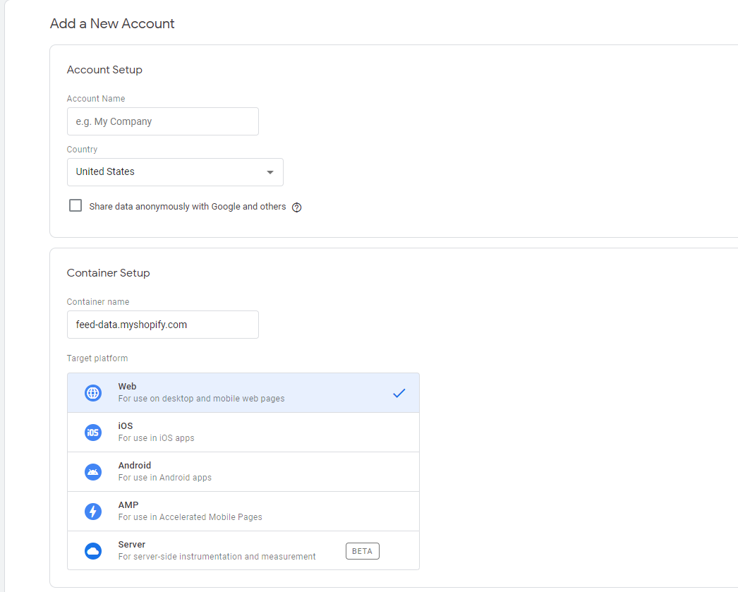 #### **Create a new Google Tag Manager account or get your Container ID for your existing account at** [**https://tagmanager.google.com** ](https://tagmanager.google.com/)